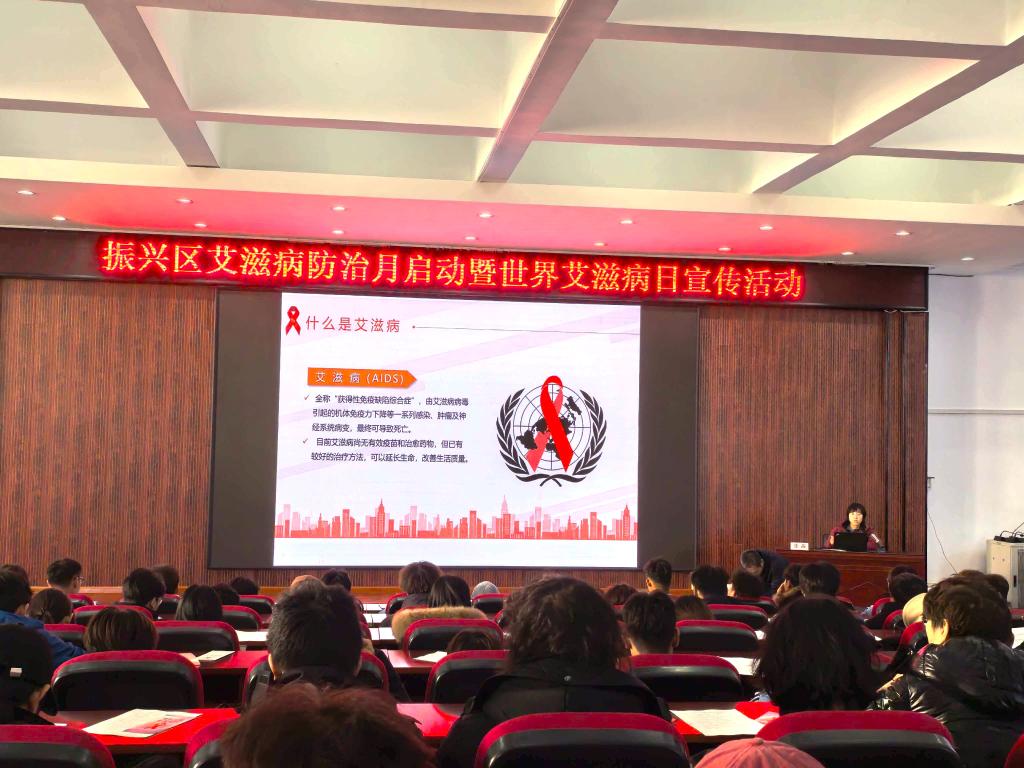 振兴区疾病预防控制中心医生张茜为学生作艾滋病防治知识讲座,详细讲解艾滋病的症状、传播方式、对人体健康的危害、检测和治疗方式等内容,引导学生树立正确的恋爱观和价值观,养成良好的健康生活方式。