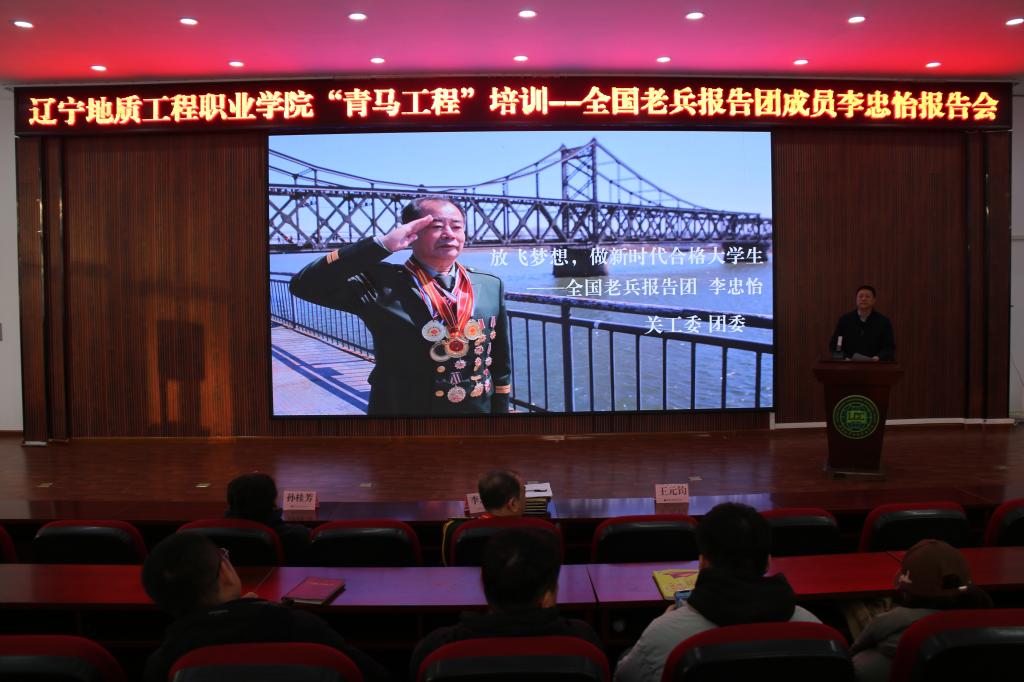 12月4日,学院特邀全国老兵报告团成员李忠怡,为青马学员作专题报告会,党委副书记王元钧主持会议,关工委副主任孙桂芳出席会议。报告会以抗战小诗开篇,李忠怡声情并茂还原抗美援朝“冰雕连”壮烈事迹,泛黄的历史细节让现场学员深受触动。围绕“放飞梦想,做新时代合格大学生”核心,李忠怡从坚定理想信念、学好专业知识、厚植家国情怀等三方面为学员指明成长方向,既有英雄故事的震撼,亦有亲身经历的温情与殷切嘱托,为学员带来深刻思想洗礼,进一步筑牢其思想根基。