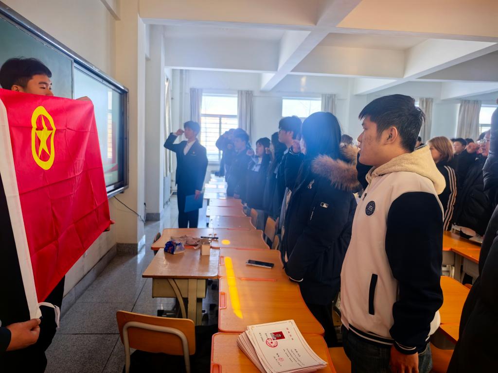 测绘与环境工程系举行新团员入团仪式,为新团员佩戴团徽,面向团旗庄严宣誓,铿锵有力的誓言里满是青年对党的追随与担当,引导团员青年铭记历史、坚定信念,把专业所学融入祖国建设,让爱国之心、报国之行成为青春最亮丽的底色。