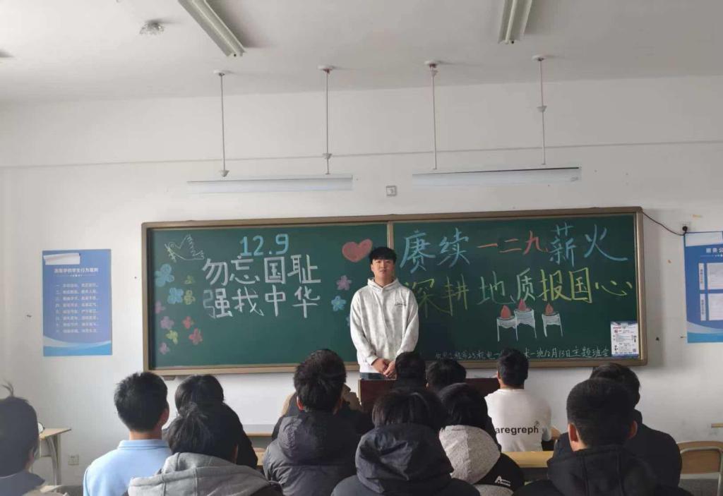 机电工程系组织开展“红色地质”知识分享会、“我为地质献青春”主题讨论、集体宣誓等沉浸式教育活动,将“一二·九”运动所承载的爱国主义精神与地质“三光荣”“四特别”精神深度融合,引导学生将个人理想融入国家地质事业发展。