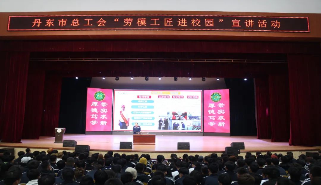 4月20日,由丹东市总工会主办,学院工会、学生处协办的“劳模工匠进校园”宣讲活动在学院报告厅举行,全国五一劳动奖章获得者陈润晶作宣讲报告。市总工会教科文卫工会主席李向军,工会干事于音、王金桐,学院工会、学生处负责人,及2022级1500余名学生代表参与活动。