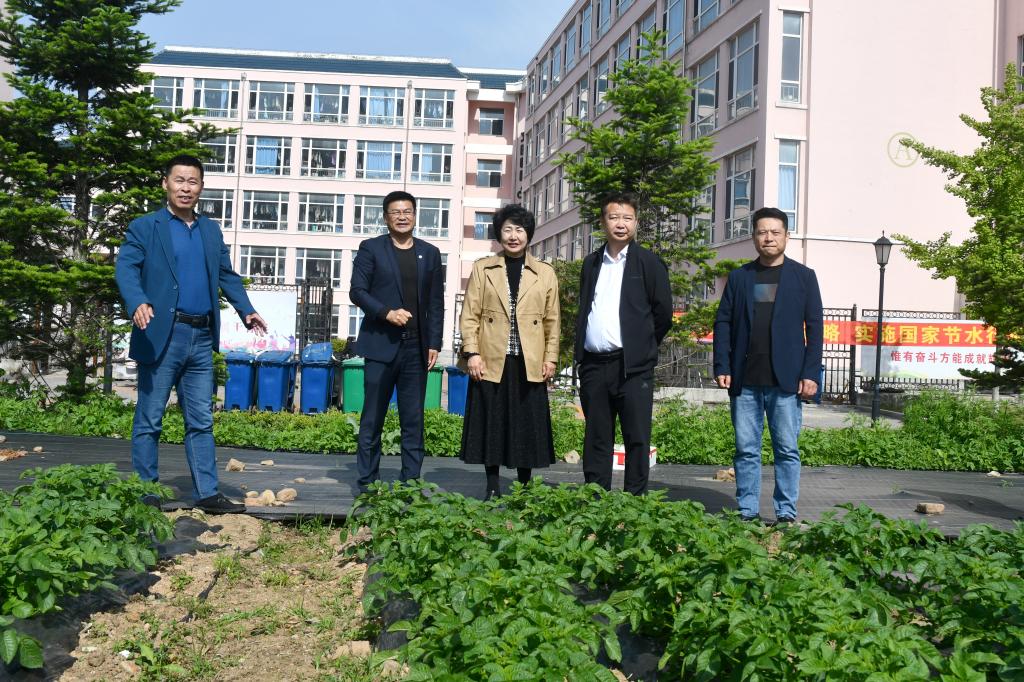 5月14日,党委书记吕志霞、院长李胜到绿色责任田调研,参观指导绿色蔬菜种植工作,引导师生弘扬劳动精神,践行绿色健康理念,共建绿色文明校园。