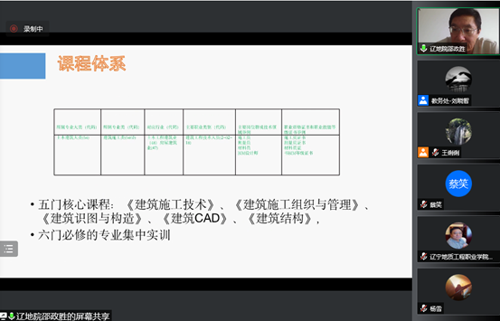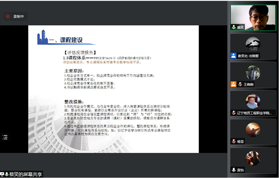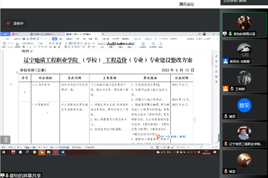 根据《辽宁省高等职业教育专业评估实施方案》评估结果,学院为进一步完善三星级专业整改方案,于6月21日上午,在线上召开建筑系星级专业整改会议。学院党委副书记高山、评估专家欧阳伟、以及建筑系相关专业负责人参加了会议。本次会议由教务处处长王俐俐主持。