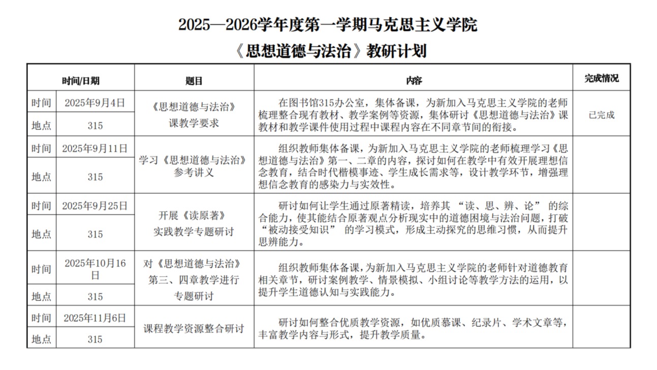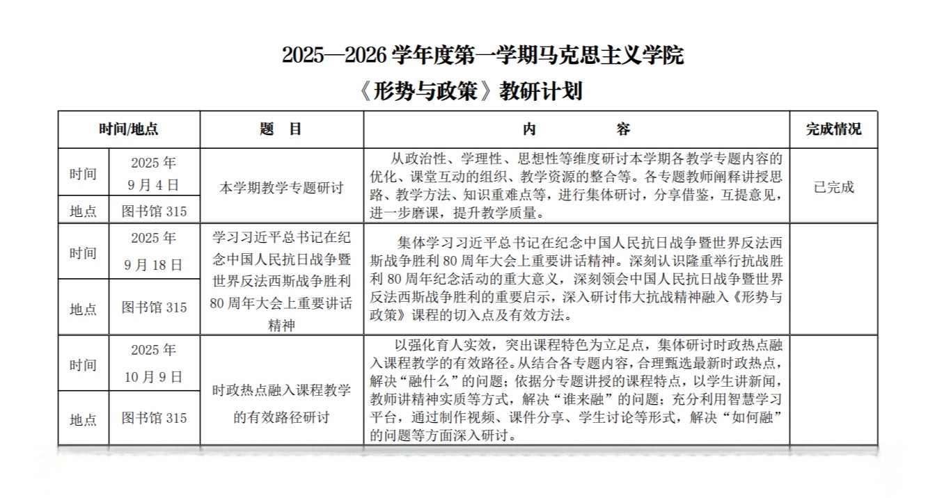 2025—2026学年度第一学期马克思主义学院教研计划