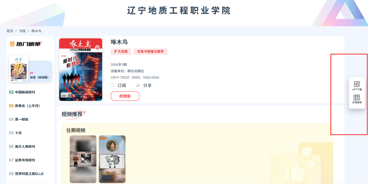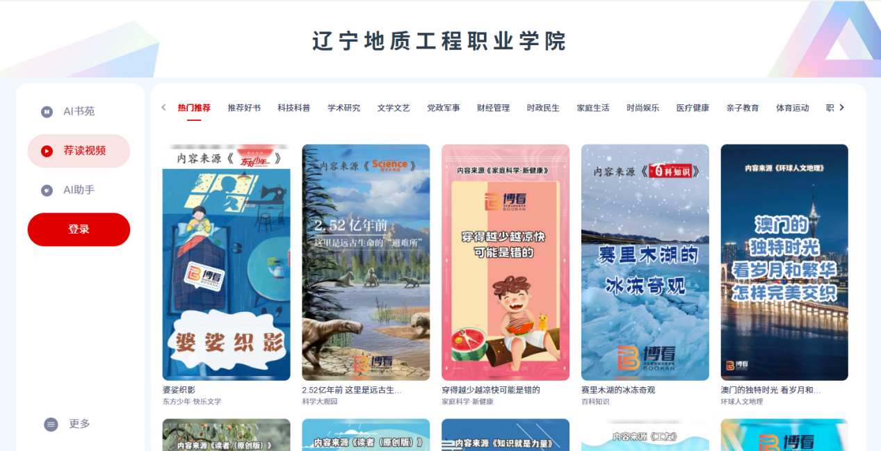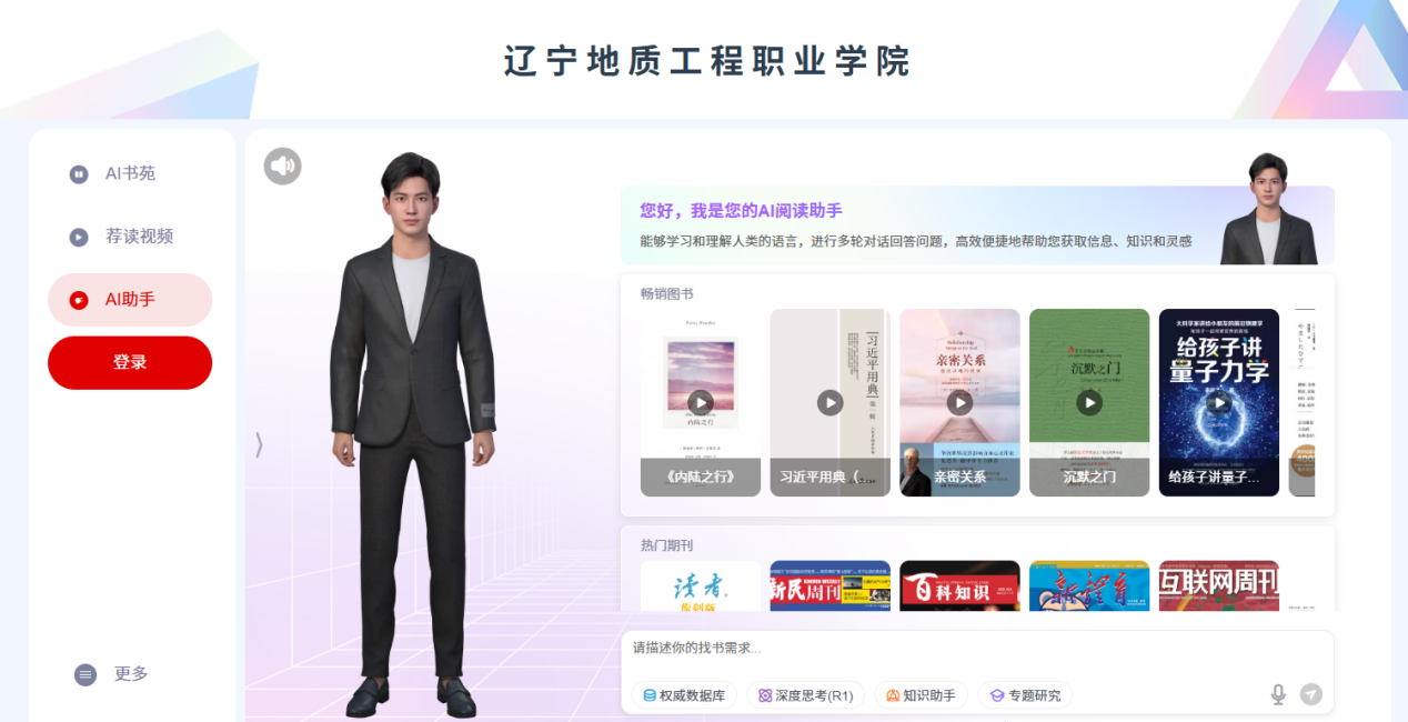 2025年博看数据库在期刊和图书资源的基础上增加了视频荐读功能和AI阅读助手功能。荐读视频将传统文字阅读模式变为视频查看,提升效率节省时间,荐书视频与博看期刊、图书资源关联,用户可以直接通过视频旁入口进行期刊、图书的原文阅读,还可以针对期刊图书进行AI提问,AI会为您用书刊内容解答,提高阅读效率。AI阅读助手则是通过语音对话,了解您的找书、阅读需求,阅读助手便会为您推荐合适的书刊,以及书刊对应AI化的短视频。