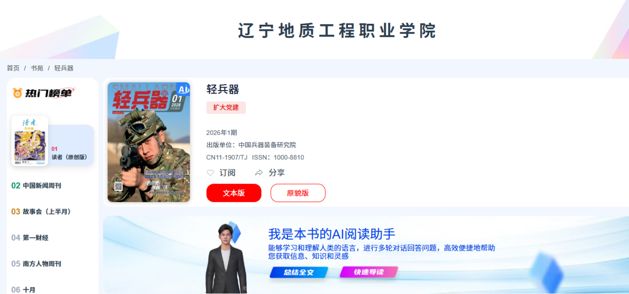 试用地址:进入学院图书馆网站数据库资源栏目或者https://ai-zq.bookan.com.cn/?id=21364