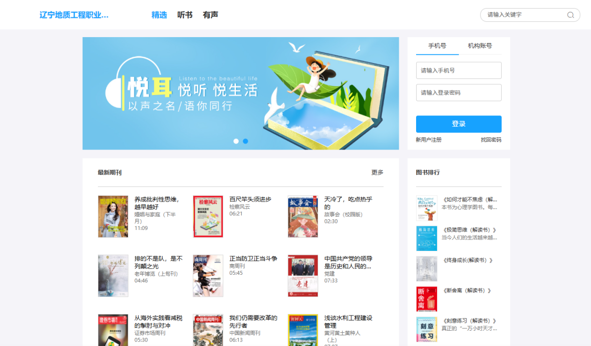 试用地址:进入学院图书馆网站数据库资源栏目或者https://voicepc.bookan.com.cn/29928/index