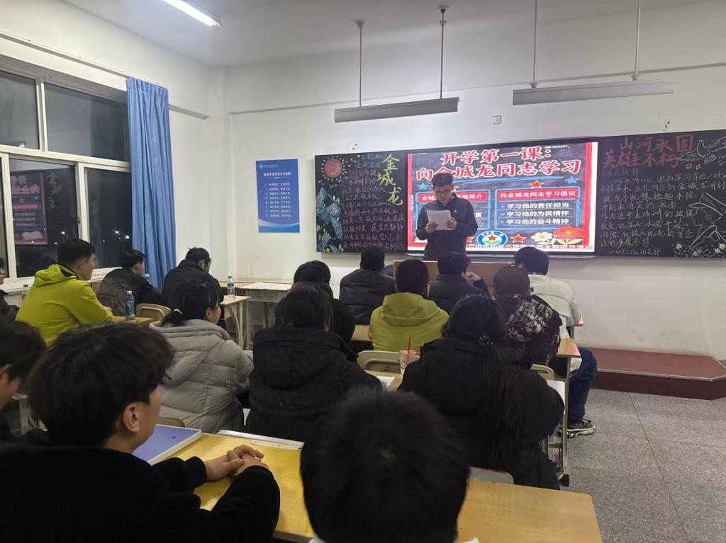 为深入贯彻《辽宁共青团关于开展向金城龙同志学习活动的实施方案》文件要求和学院2026 年春季“开学第一课”工作部署,充分挖掘辽宁红色文化资源的育人价值,引导广大团员青年厚植爱国情怀、勇担时代使命,3 月 5 日,学院团委组织全院124 个团支部以“英雄永不谢幕 —— 向金城龙同志学习”为主题开展团日活动,覆盖4100余名在校学生。本次活动以班级晚自习教室为阵地,将英雄精神学习融入团员教育日常,让红色基因在青年学子心中落地生根。
