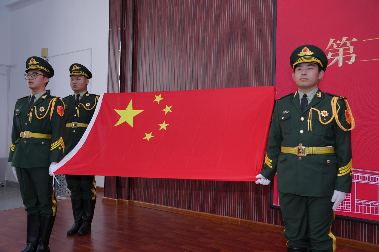 仪式正式开始,首先由国旗班护卫国旗庄严出旗,全体人员肃立注目。随后进行仪式第一项:奏唱中华人民共和国国歌。
