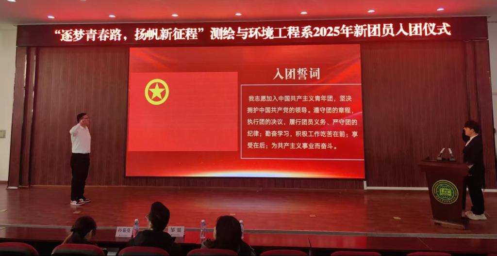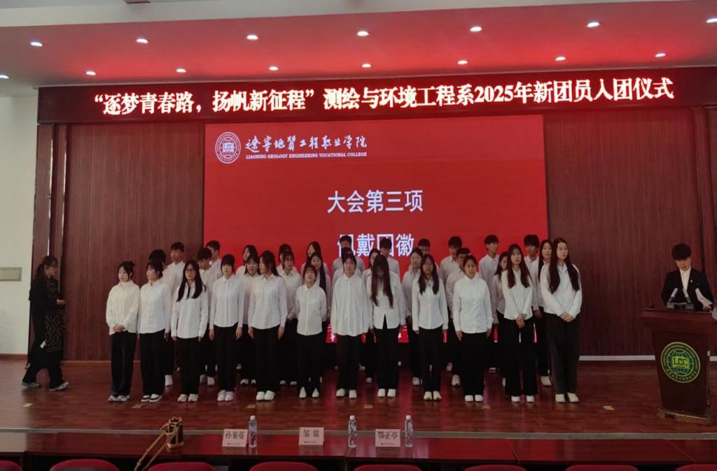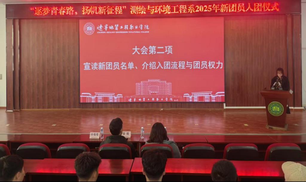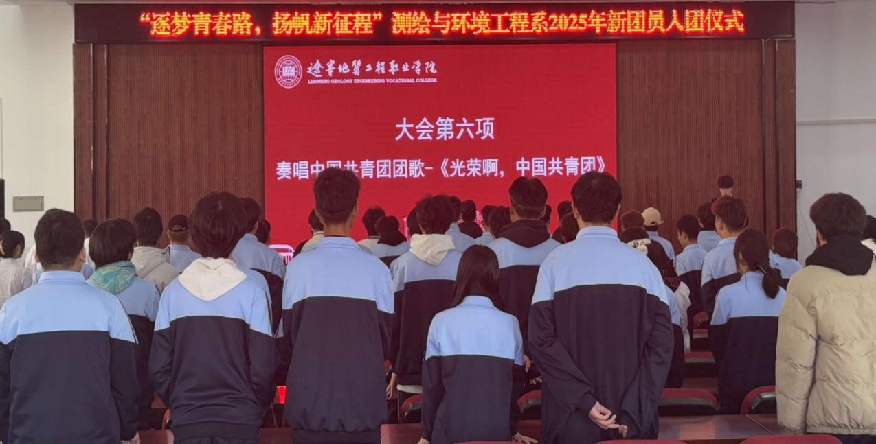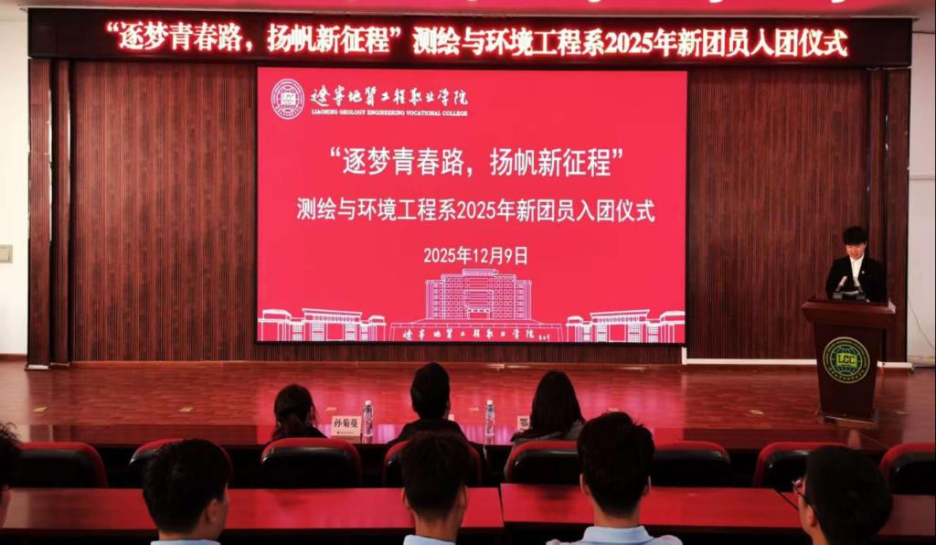 为进一步加强共青团组织建设,传承红色基因,凝聚青春力量,2025年12月9日,辽宁地质工程职业学院测绘与环境工程系在多功能厅隆重举行了“逐梦青春路,扬帆新征程”2025年新团员入团仪式。本次仪式由团总支副书记曹天成主持。