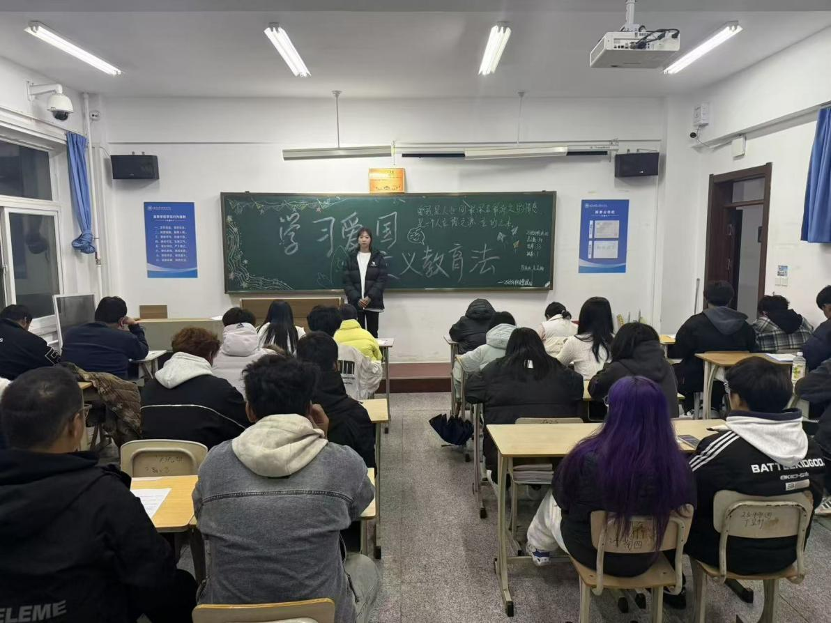 1.法律专题解读:由思政课教师结合PPT,围绕《中华人民共和国爱国主义教育法》中 “学校爱国主义教育职责”“个人爱国行为规范” 等内容展开讲解,重点分析 “将爱国主义教育融入学科教学”“保护红色文化遗产” 等与学生相关的条款;同时结合信息工程专业特点,举例说明 “用专业技术修复红色历史影像”“开发红色文化宣传小程序” 等践行爱国精神的具体路径,让法律学习更具针对性。