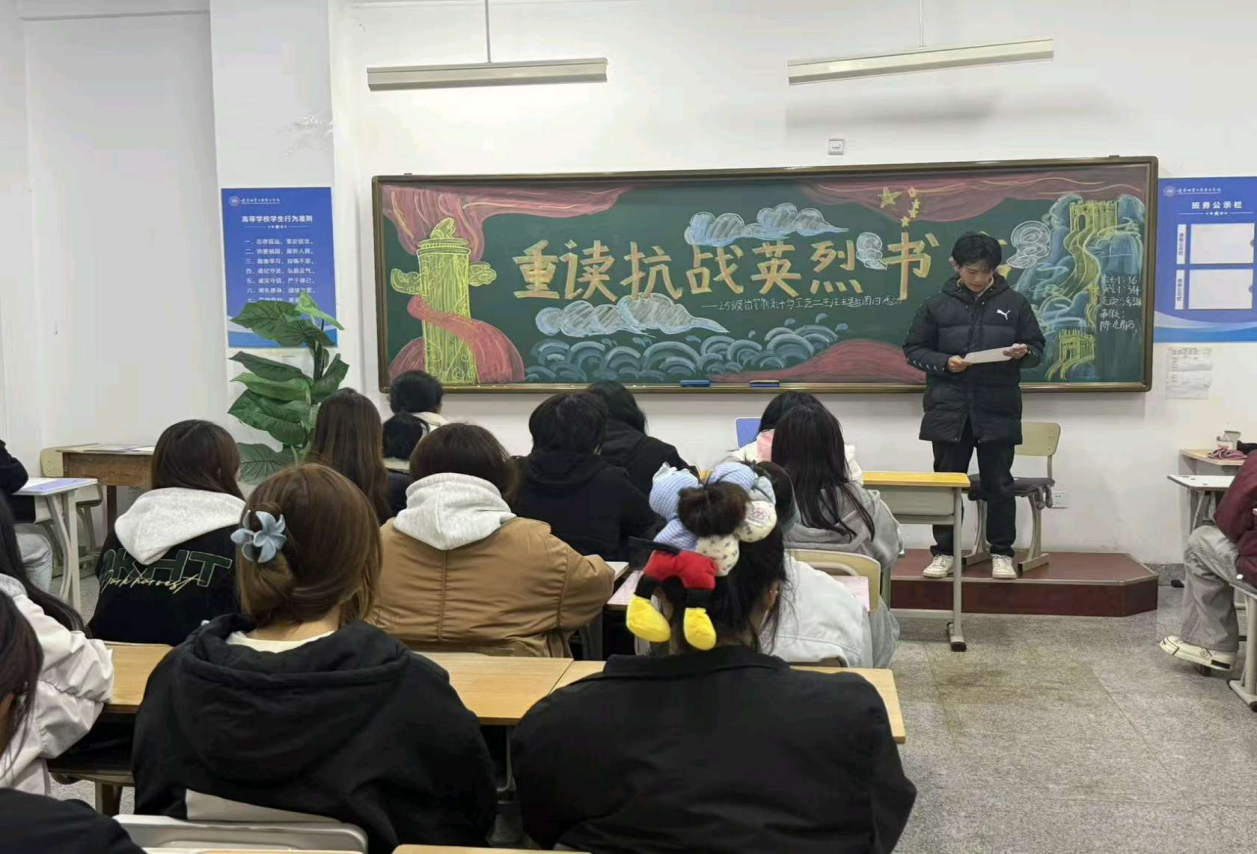 本次活动时长45分钟,前期筹备阶段,25资源系各班教室前方黑板以“重读抗战英烈书信”为主题绘制黑板报,班会后不仅增强了班级凝聚力,更坚定了同学们传承红色基因、担当时代使命的信念。我们将以英烈为榜样,珍惜当下,砥砺前行。