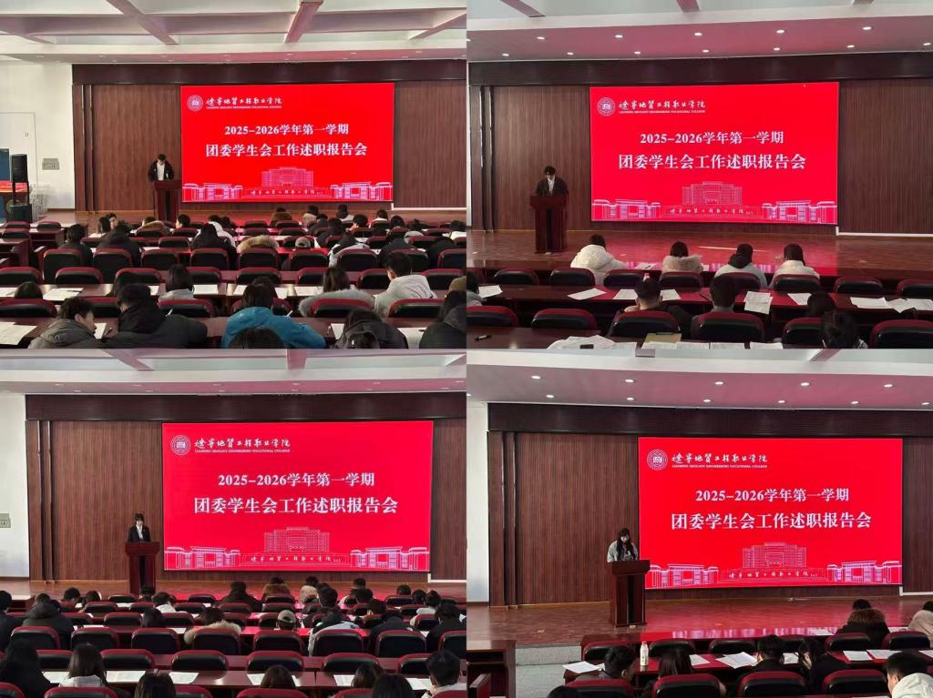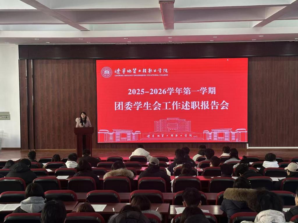 2026年1月7日下午,我院团委学生会开展了2026第一学期工作述职报告,其目的为总结过去一学期的工作成绩与经验,明确未来的发展方向和目标。报告会由团委副书记王旭莹主持报告会。主席团,学生副书记,以及各部门部长副部长参与汇报,团委书记荣传臻,各系团总支以及大一部员作为评估主体,对部长及以上职位的工作进行评价。