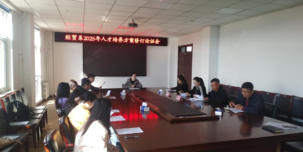 为顺应数字经济与实体经济深度融合的新时代发展浪潮,坚守为党育人、为国育才的初心使命,经贸系立足学校关于人才培养方案修订的总体要求,于2025年5月7日下午3点30分在综合楼719召开2025级人才培养方案论证会。会议有幸邀请到爱思开(辽宁)物流有限公司物流部部长张红新,其在物流行业拥有丰富的实操经验与前沿视野;丹东新盛造纸机械有限公司运营总监李熙媛,她在制造业人才培养对接岗位需求方面有着独到见解。经贸系班子成员、专业负责人、教研室主任以及专业课教师齐聚一堂,共同为人才培养方案把脉定向,会议由经贸系主任逄勃主持。