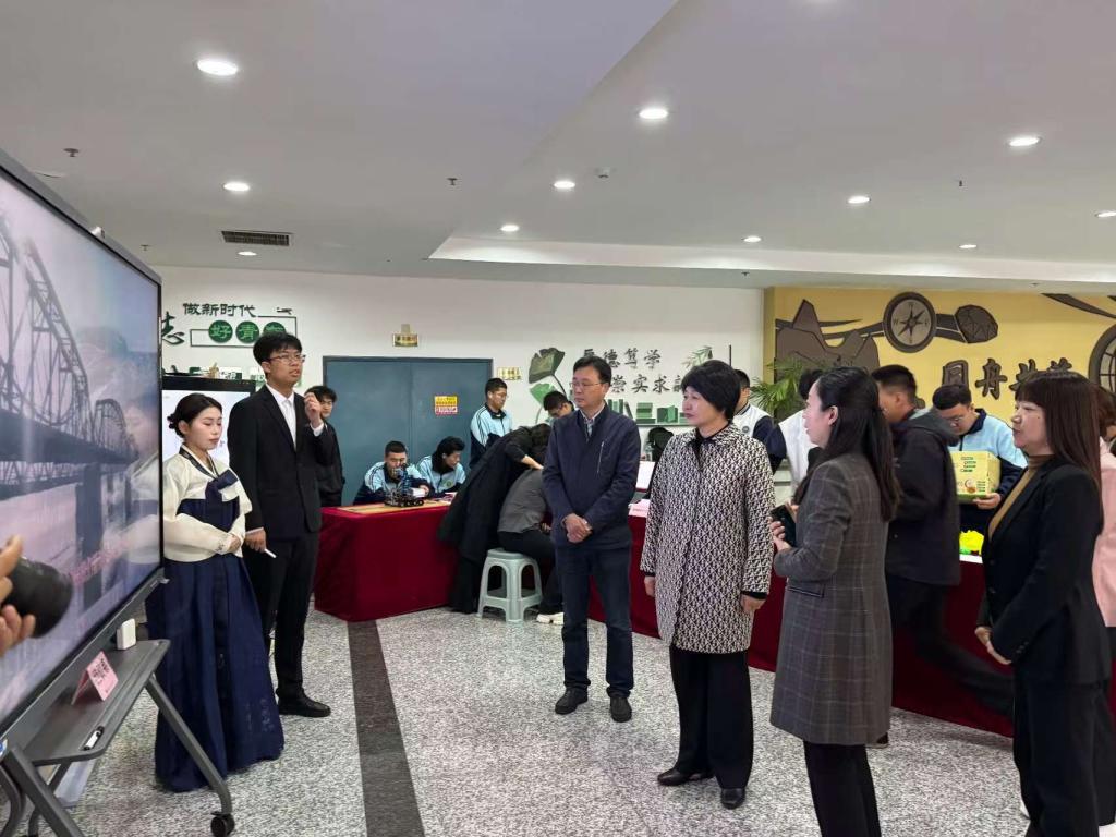 为充分展现学生韩语学习成果,体现职业教育特色,2025年5月14日职教周期间,应用韩语专业开展特色技能展示。学生以丹东红色文化为背景,用韩语进行口语讲解,将专业技能与本地红色历史深度融合,生动呈现“语言+文化”的学习成效。