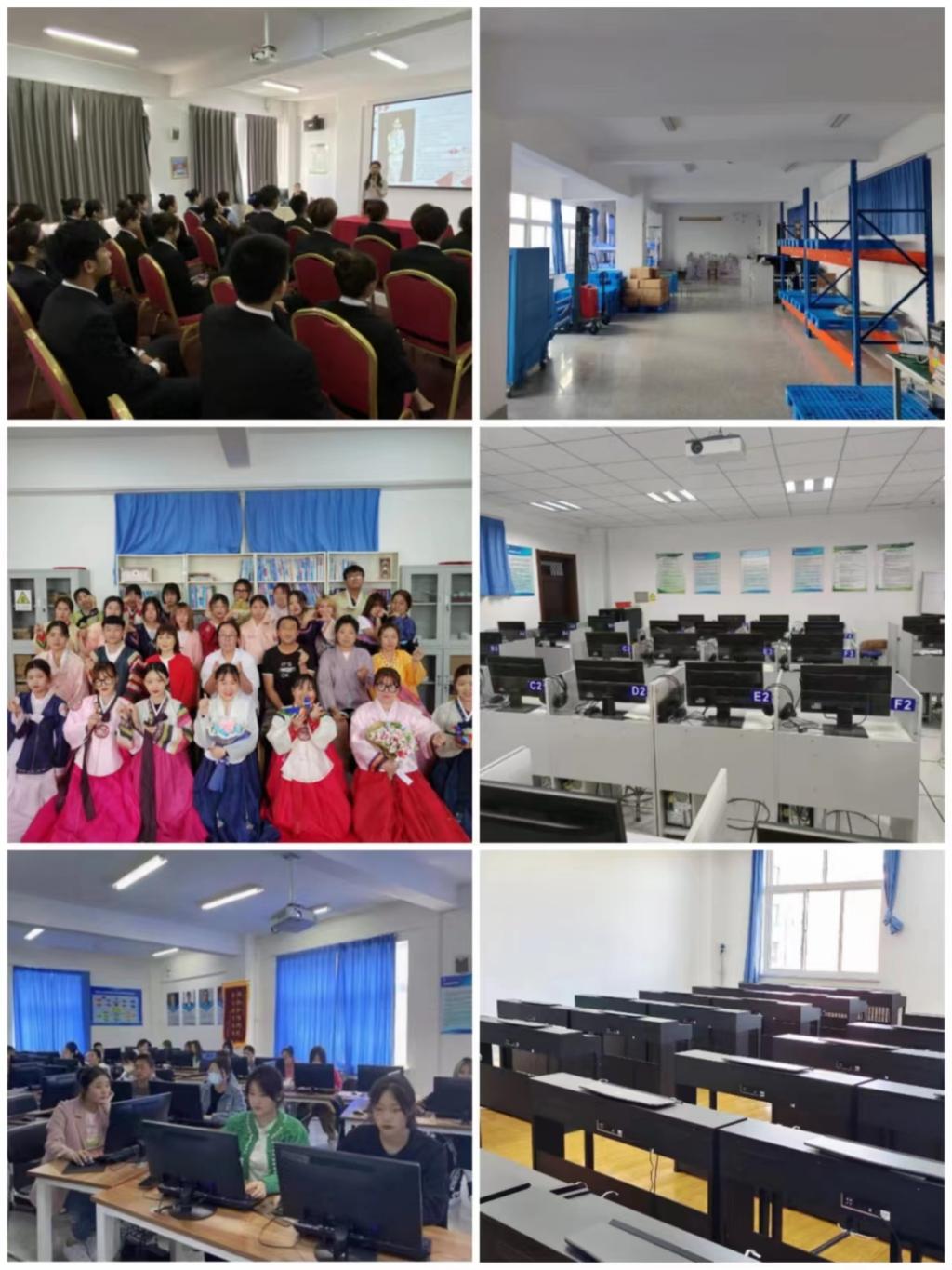 经贸系现有物流技能操作实训室、多功能外语语言实训中心(英语与韩语)、国际商务综合实训室、电商校企共建实训中心、礼仪文化综合实训室、从教技能实训室、校企电子商务综合实训室等7个校内实训基地,拥有120余台电脑、3套教学实训软件、数十套韩国传统服饰,用于专业核心课程的模拟实训,利用率达95%以上,校外实训基地10余个,能够全面提高学生职业素质,最终达到学生满意就业、企业满意用人的目的。