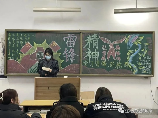 各团支部通过主题班会组织同学们了解雷锋的生平事迹,弘扬雷锋精神,树立道德标杆,汲取榜样力量。让同学们积极行动,将雷锋精神和身边的小事结合起来,从点滴做起,从身边事做起,热心帮助他人,争做文明学生。