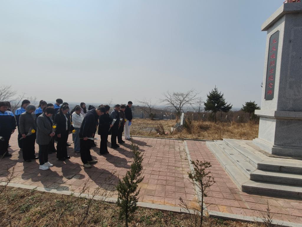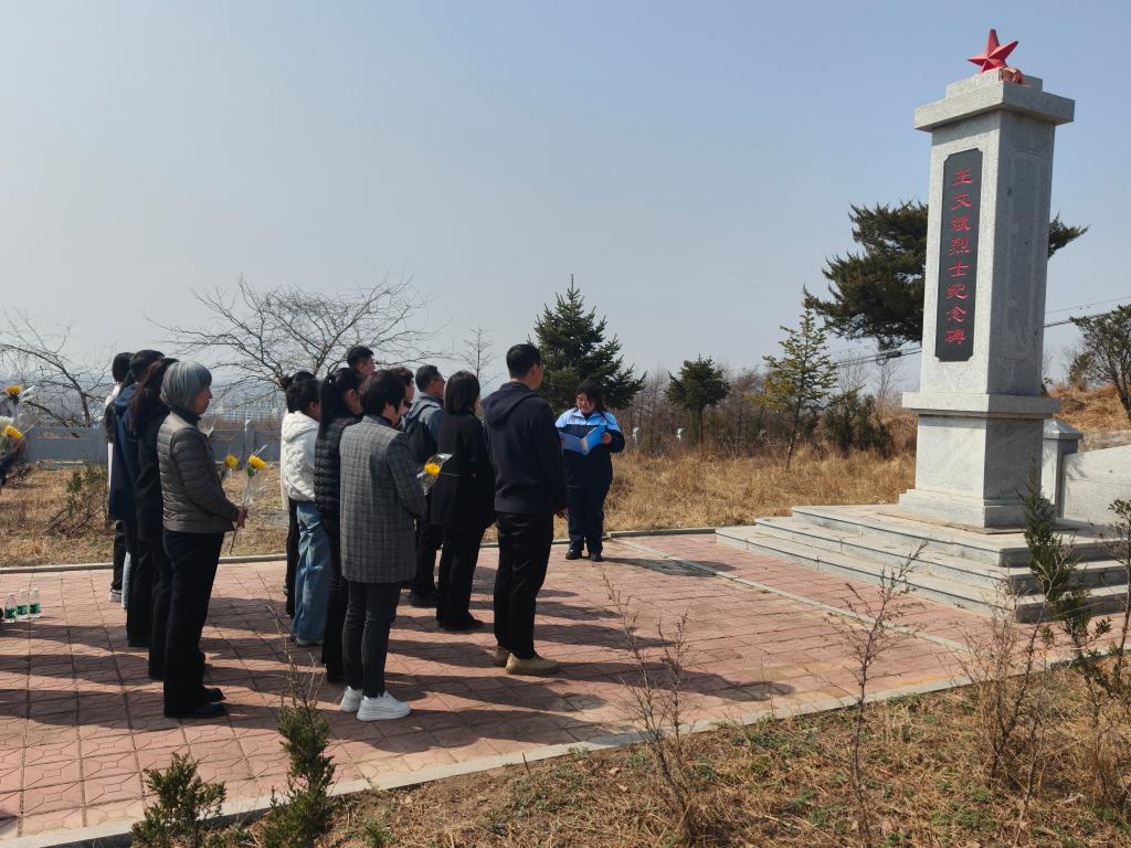 祭扫现场庄严肃穆,全体人员整齐默哀,依次敬献鲜花,以朴素仪式寄托对烈士的深切哀思与崇高敬意。系副主任贺斌现场讲述王文斌烈士英雄事迹,带领师生重温烈士为民族解放英勇献身的光辉历程,让大家在实景中接受红色教育,感悟英烈的坚定信仰与无畏精神。