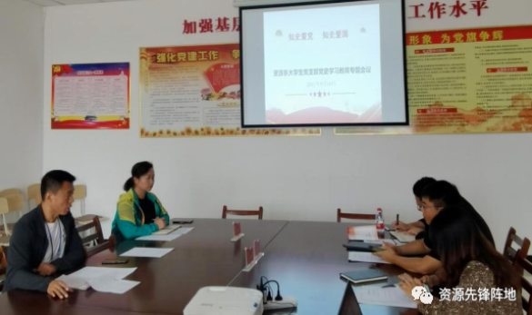 为深入学习贯彻习近平总书记在党史学习教育动员大会上的重要讲话精神,喜迎伟大祖国72华诞,增强支部党员的党性修养,引导支部党员牢固树立爱党爱国情怀,9月16日下午,资源系大学生党支部在学院报告厅201党员活动室,召开“知史爱党知史爱国”专题学习会议。资源系大学生党支部全体在校党员参加活动。